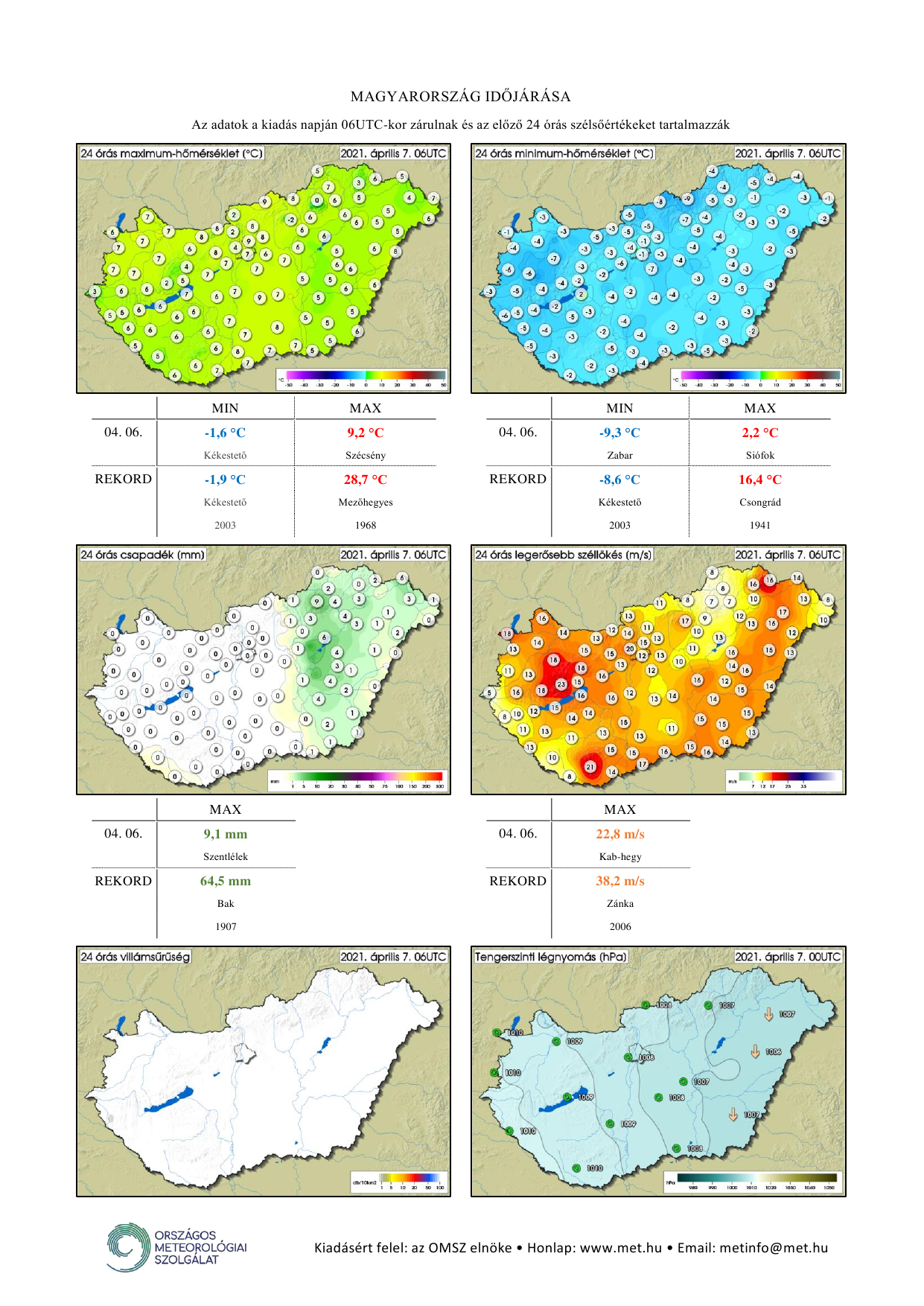 Ezt nem szabad nézni mert sz@r, a térképen gyakorlatilag az 5-ei és 7-ei minimumok szerepelnek (tavasszal már bőven 6 UTC előtt állnak be), viszont az előző napi rekordokhoz hasonlítva. 5-én viszont -8,6 °C, míg 7-én -10,9 °C a napi rekord, így egyik nap sem dőlt meg tavaly.
