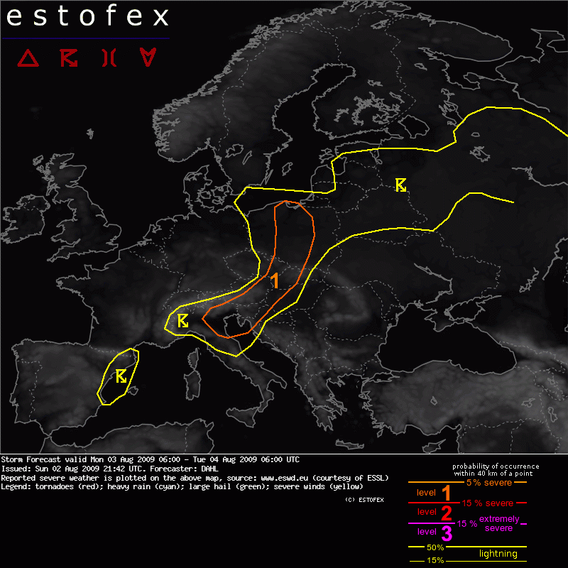 On: a késõ esti óráktól valószínû zivatarok érkezése Ausztria felõl. Nagyjából a Szentgotthárdtól felfelé lévõ határszakaszon fognak az országba belépni és K-ÉK-i irányban fognak haladni, hol legyyengülve, hol felerõsödve a cellák. Nagy az esélye, hogy akár vonalba-rendezõdés is legyen. A viszonylag száraz levegõ miatt én nem zárom ki, hogy egy-egy hevesebb zivatarcella körül jóval 100km/h feletti széllökések legyenek átmenetileg.Lokálisan 20-30 mm csapadék is hullhat, jégesõ sem kizárható. Reggelre már ÉK-en lesz a "mûsor". Mögötte mintegy 10 fokkal hidegebb levegõ árasztja majd el -viharos lökésekkel kísért széllel- a Kárpát-medencét. Ja: GFS, ECMW és MM5 alapján.