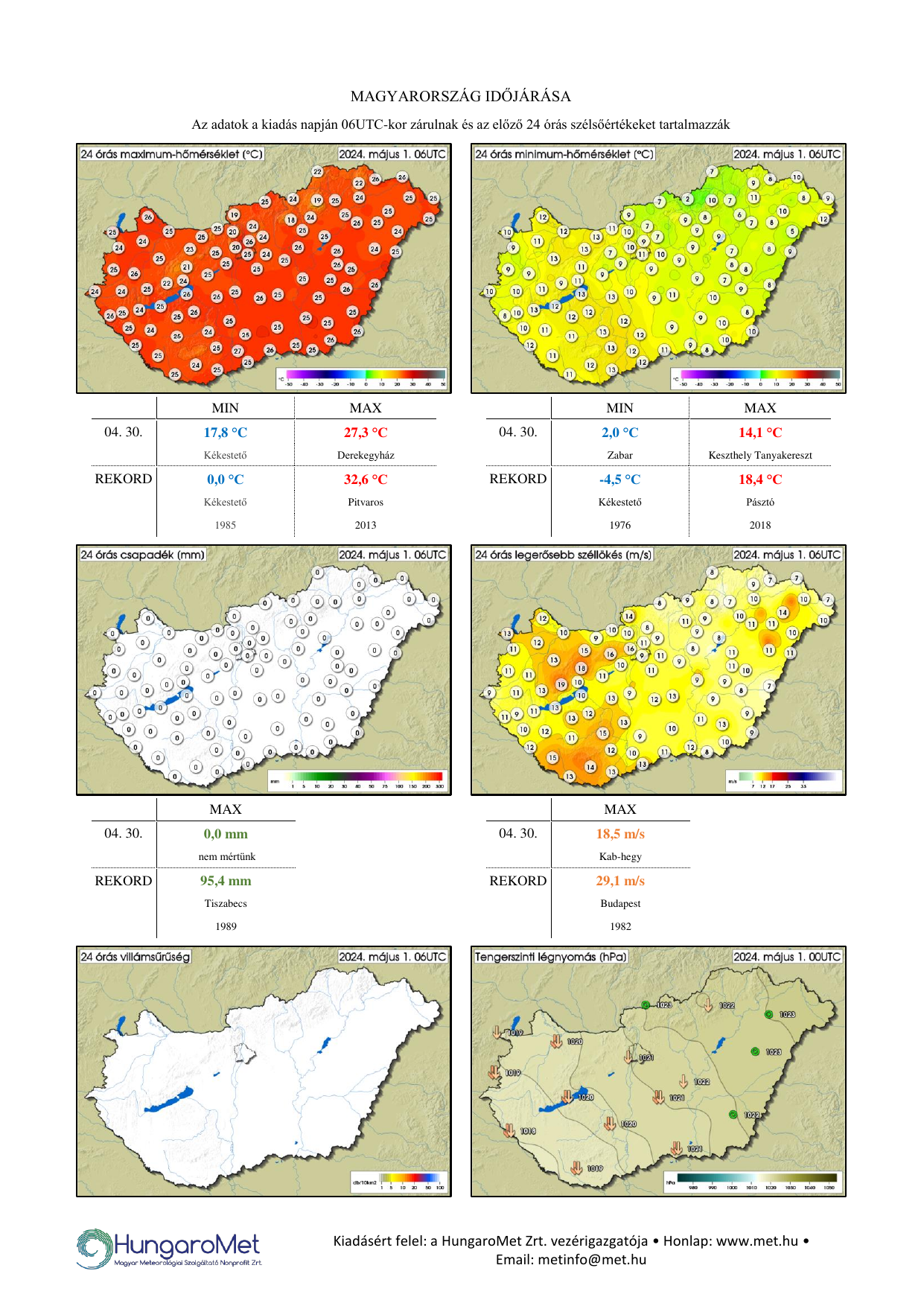 Na akkor nézzük a verifikációt, április 28-án, vasárnaptól az ország legnagyobb részén már bizony nyár volt, jócskán 25 °C feletti maximumokkal, és május első fele még nagyobbrészt száraz is volt: