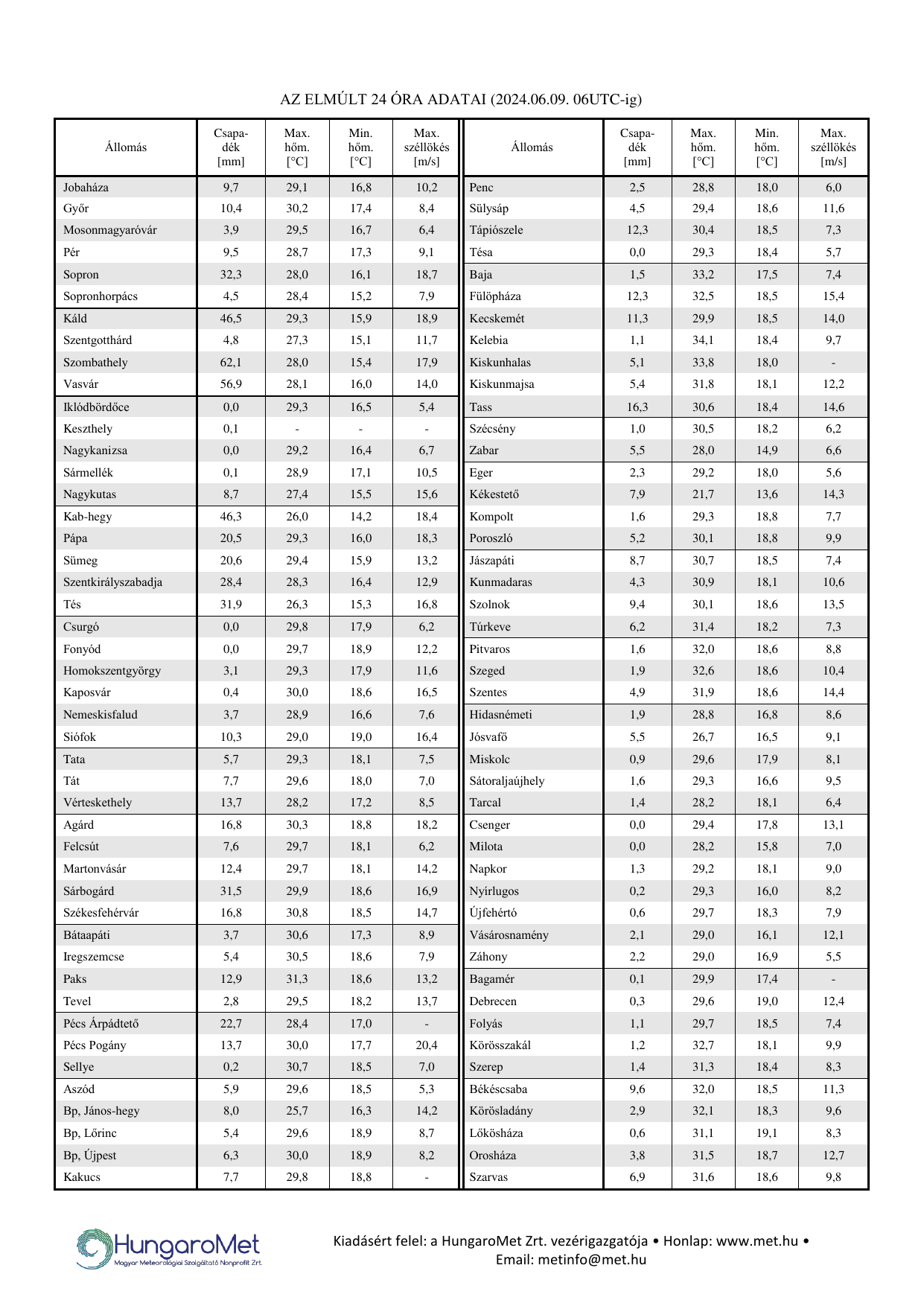 Szia. Hát akkor nem tudom. Dévaványai panaszkodott tavaly is meg évek óta hogy kevés csapadékot kapnak. Csak azért mondom mert gyomai születésű vagyok és van ismerős ott nálatok. Bocsi. Akkor örülök neki maradjon is így.