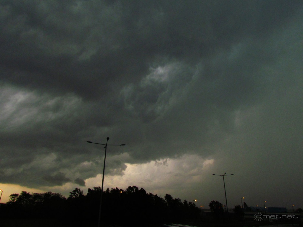 Ferihegyen ma elég nagy vihar volt a kettes terminálnál. Hatalmas széllel felhõszakadással, majd cseresznye nagyságú jégesõvel vonult át a zivatar felettem. Most itthon 4mm esett, ott kb 40mm. Így érkezett a cella: Link A jégszemekrõl: Link Távozóban sikerült egy kis felhõvillámot elcsípni: Link
