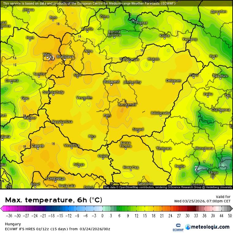 Maximum-hőmérséklet szerda délután (ECMWF-modell)