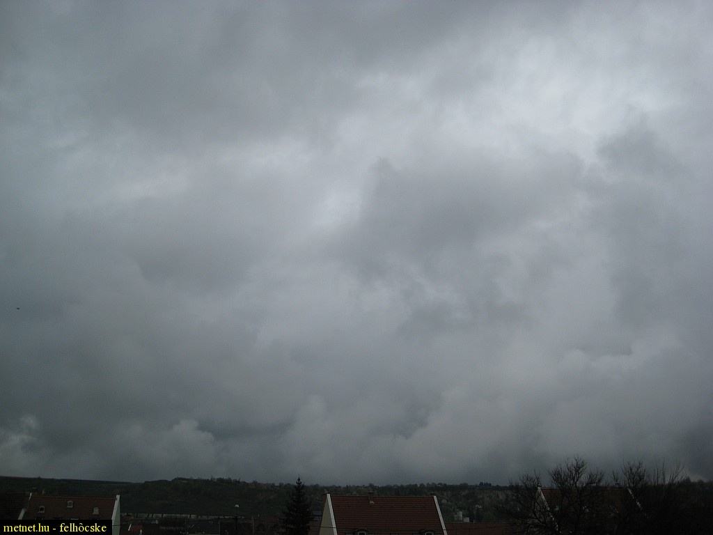 2010-04-20 15:22:50 - Kosakiss Klasszikus Nimbostratus. Az egyes felhõrészletek dõlésébõl itélve É-ról vonulhat D felé.