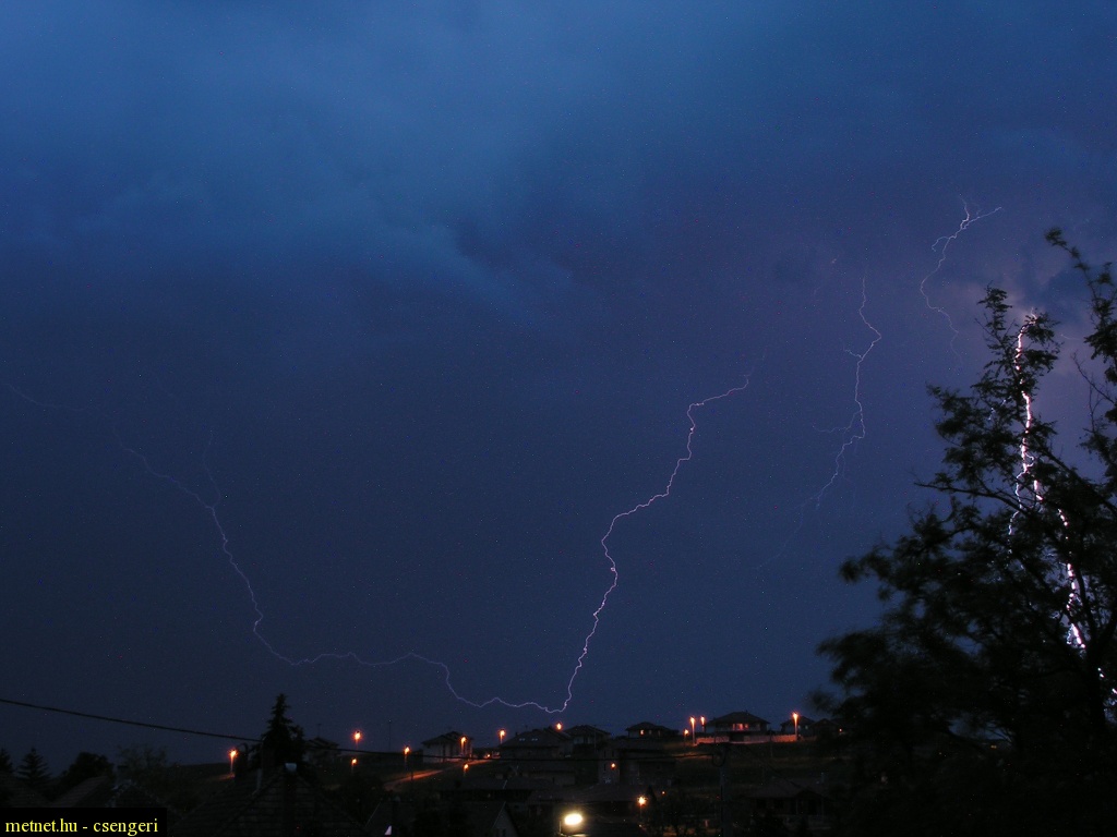 | Leírás: Az este 9 órakor érkezõ zivatar villámai | |