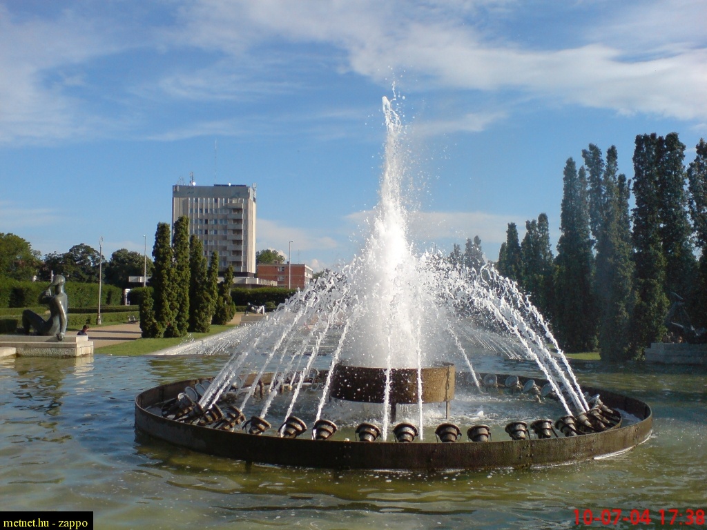 | Leírás: Régi debreceni szökõkutak. A Kossuth egyetem kör szökõkútja. Háttérben a Zenemûvészeti Kar épülete. |