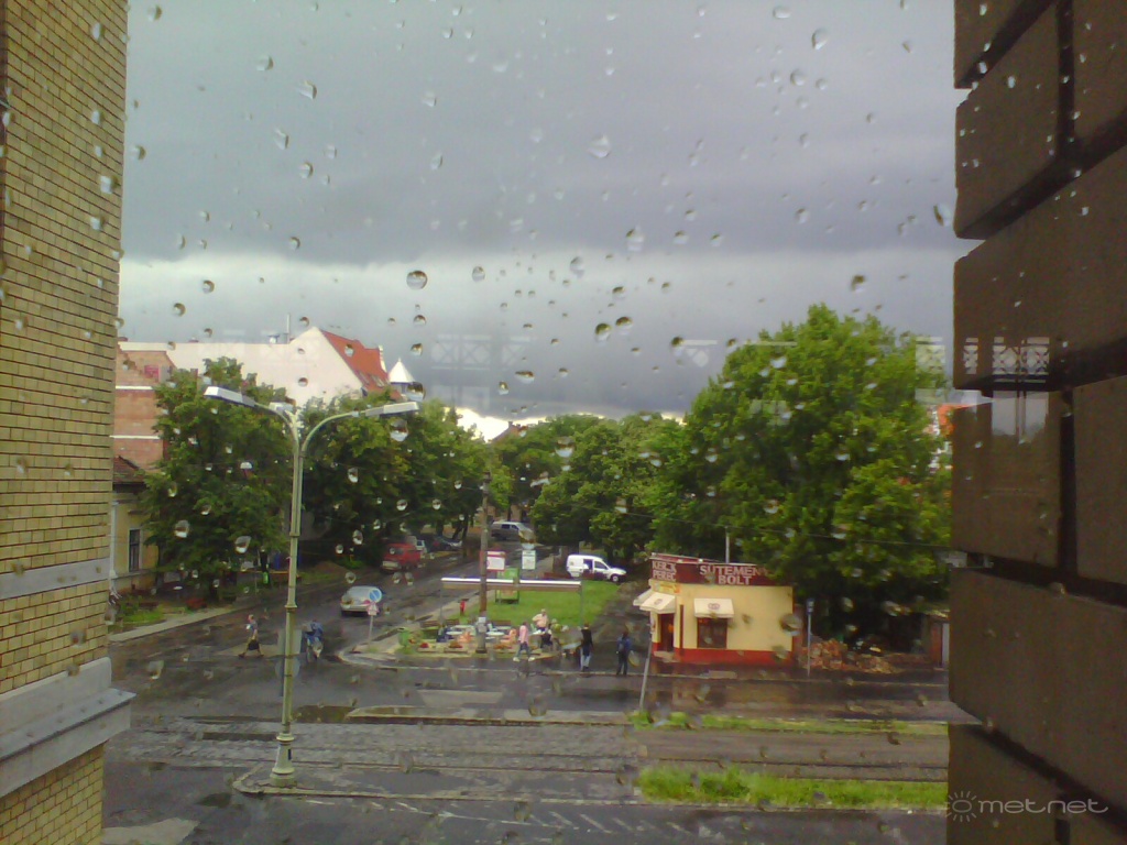 | Leírás: A 2. hullám. A pályaudvarnál azaz Szeged déli részén egy csepp sem esett,viszont kicsit északabbra újra intenzív záport okozott,viszont a Gust-Front viharos volt! | |