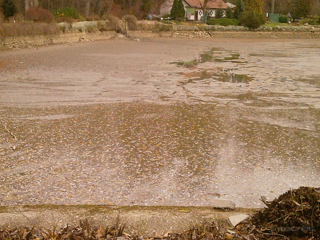 | Leírás: Árvíz után a "kiszáradt" Zirci Arborétum tó!Nem lopták el csak elterelték a helyreállítás alatt! | |