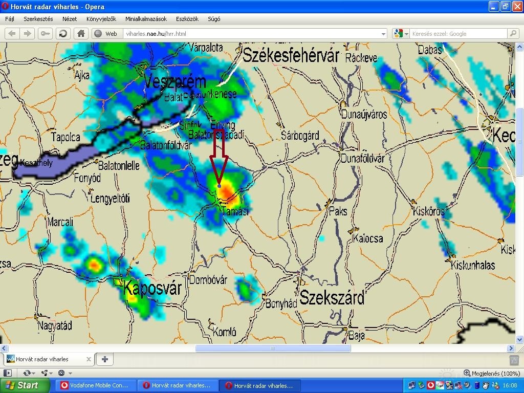 | Leírás: Ezt kaptuk telibe helyileg a pötty mutatja, hogy hol voltam. | |
