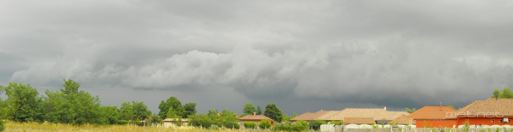 | Leírás: Peremfelhõs, "egyhelybenállós" zivatar. Itt nem esett belõle. | |