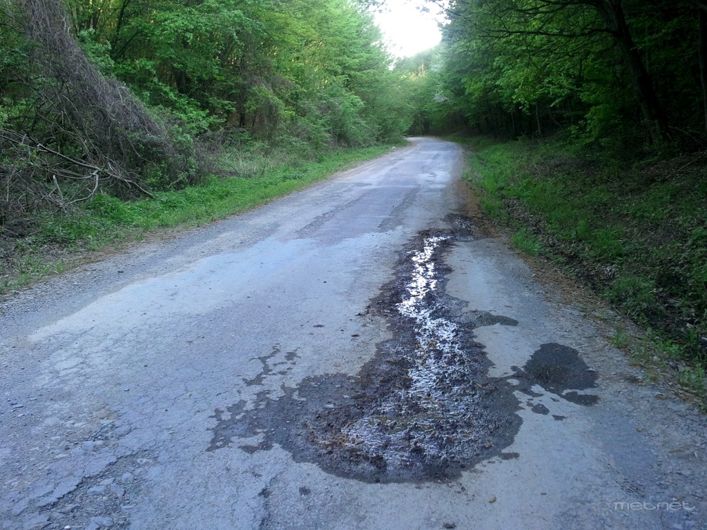 | Leírás: Aszfalt - víz párharcból itt az utóbbi került ki gyõztesen (Bükkzsérc felett 2-3km-re az erdészúton) |