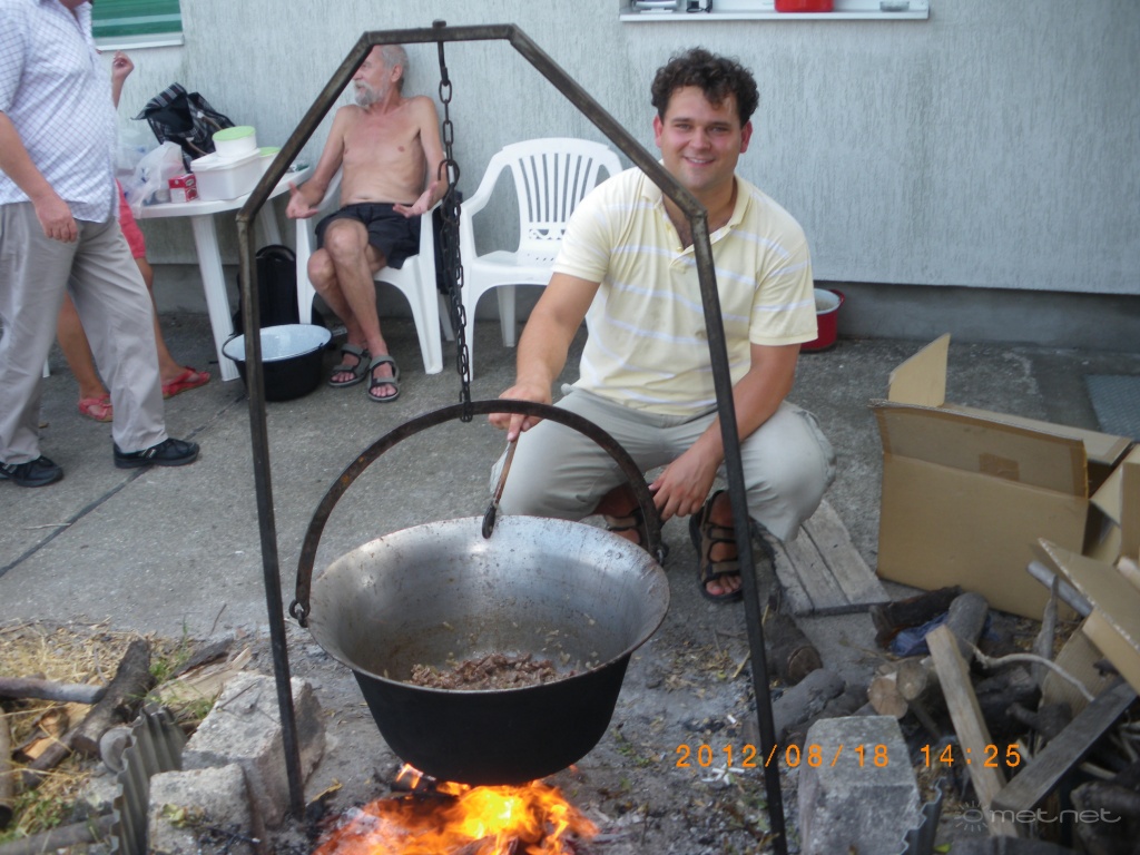 | Leírás: Szeke fõzi a fantasztikusra sikeredett bográcsgulyást | |