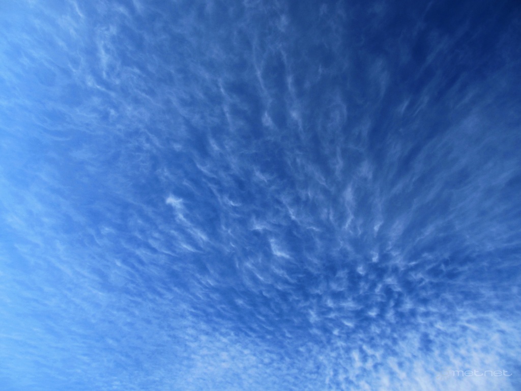 Leírás: Cirrus floccus (Ci flo). Pamacsos, bolyhos pehelyfelhõ.