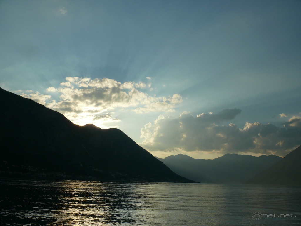 | Leírás: Kotori-öböl, Montenegró Tyndall-jelenség |