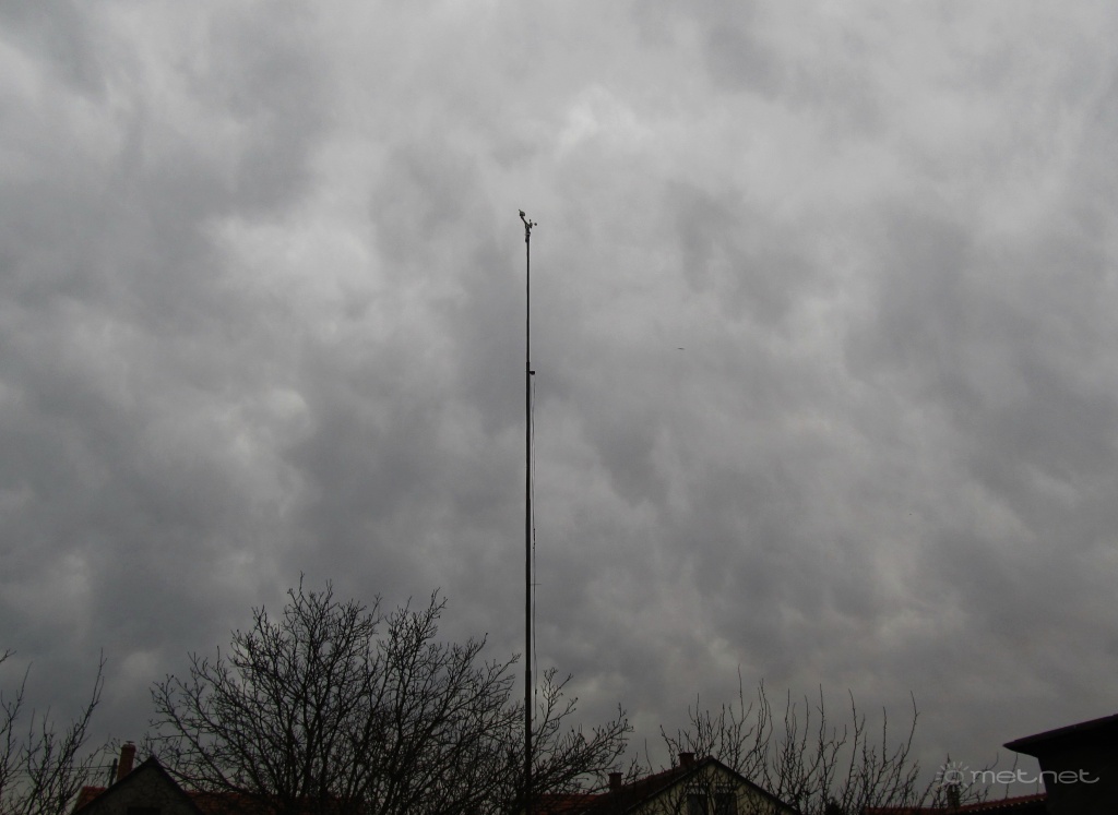 | Leírás: Altocumulus opacus mamma ( Ac op mam) Középszintû gomolyfelhõ (párnafelhõ) átlátszatlan (árnyékos, vastag sûrû), felhõdudorokkal (kebel) |