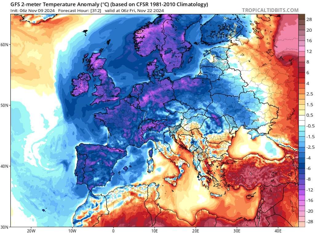 Hétfőn este melegfront érkezik, ami főként északra és keletre hoz csapadékot, zömében havat, de előfordul majd vegyes halmazállapotú csapadék is.
