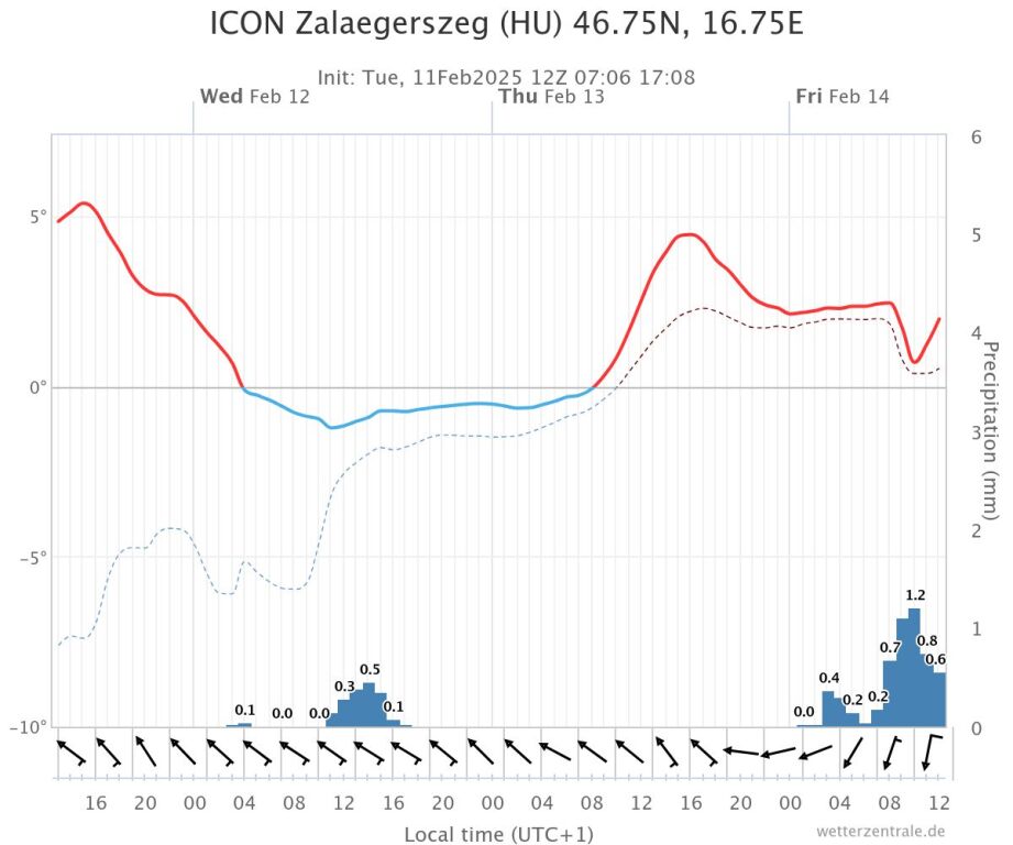 Hétfőn este melegfront érkezik, ami főként északra és keletre hoz csapadékot, zömében havat, de előfordul majd vegyes halmazállapotú csapadék is.