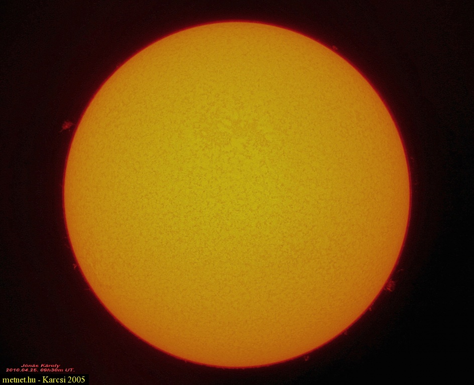 | Leírás: Ismét vannak nagyobb kitörések a napon. sajnos a fátyolfelhõk miatt elvesztek az apróbb részletek a képrõl. | |