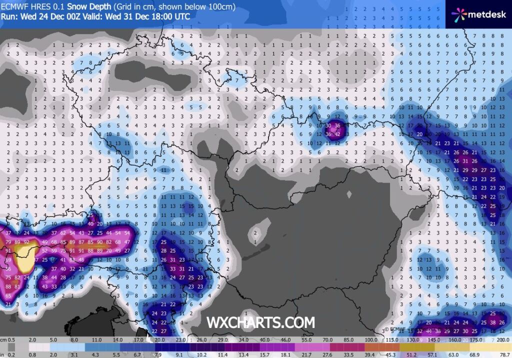Hétfőn este melegfront érkezik, ami főként északra és keletre hoz csapadékot, zömében havat, de előfordul majd vegyes halmazállapotú csapadék is.