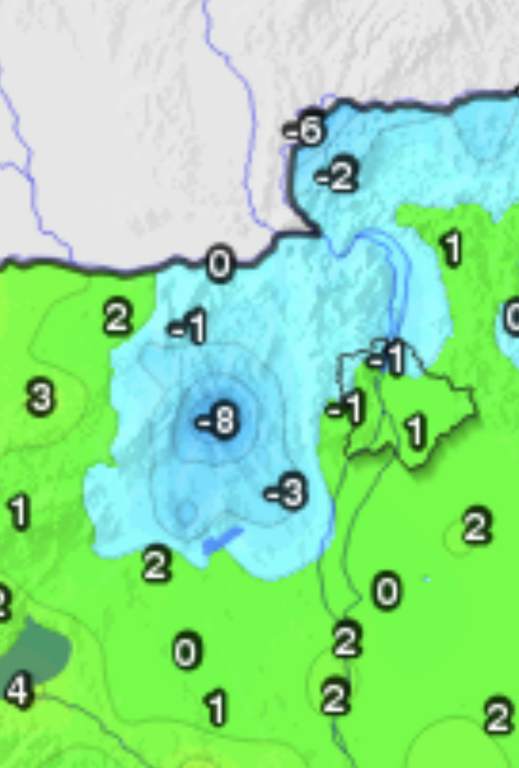 Hétfőn este melegfront érkezik, ami főként északra és keletre hoz csapadékot, zömében havat, de előfordul majd vegyes halmazállapotú csapadék is.