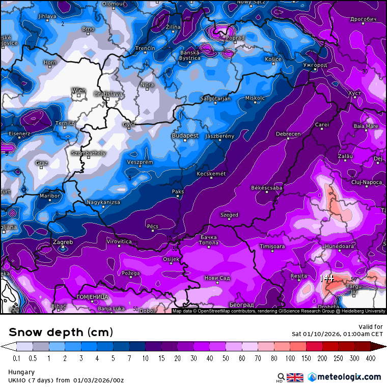 Hétfőn este melegfront érkezik, ami főként északra és keletre hoz csapadékot, zömében havat, de előfordul majd vegyes halmazállapotú csapadék is.