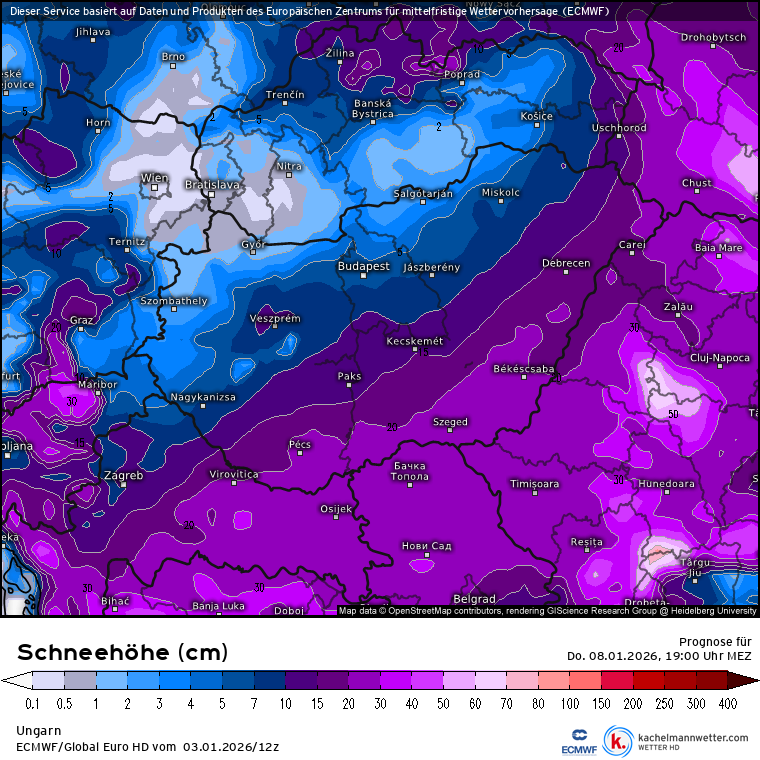 Hétfőn este melegfront érkezik, ami főként északra és keletre hoz csapadékot, zömében havat, de előfordul majd vegyes halmazállapotú csapadék is.