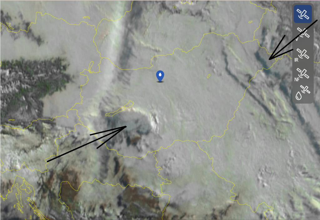 Hétfőn este melegfront érkezik, ami főként északra és keletre hoz csapadékot, zömében havat, de előfordul majd vegyes halmazállapotú csapadék is.