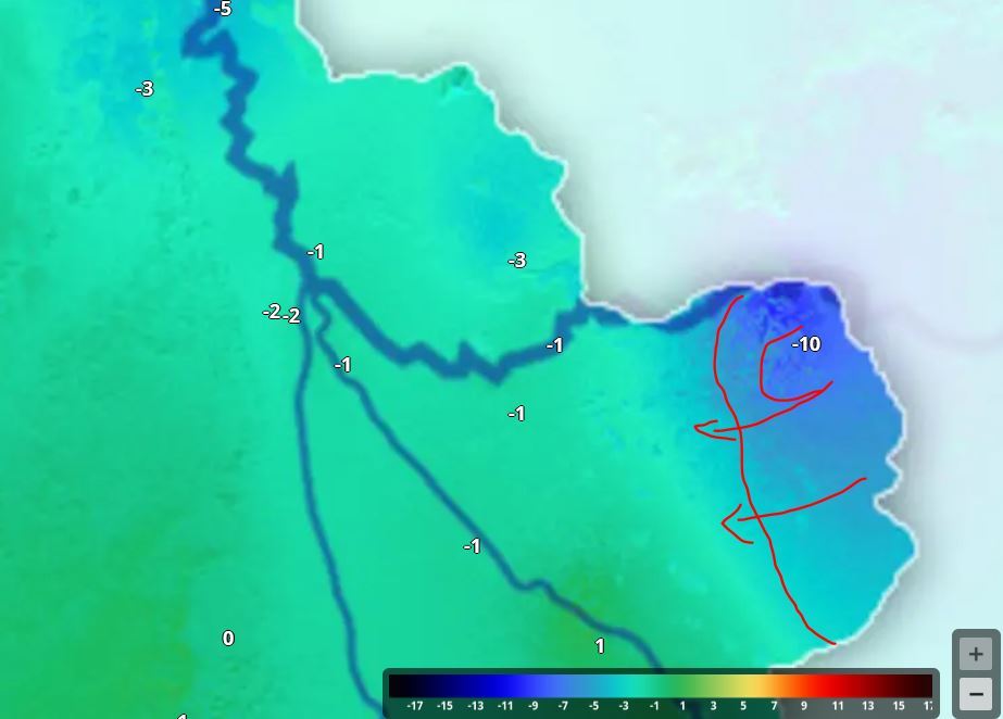 Hétfőn este melegfront érkezik, ami főként északra és keletre hoz csapadékot, zömében havat, de előfordul majd vegyes halmazállapotú csapadék is.