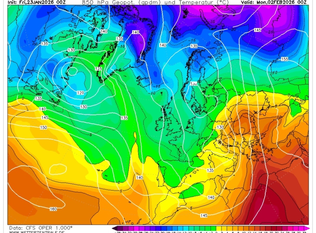 Hétfőn este melegfront érkezik, ami főként északra és keletre hoz csapadékot, zömében havat, de előfordul majd vegyes halmazállapotú csapadék is.
