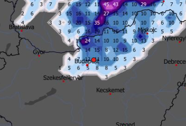 Hétfőn este melegfront érkezik, ami főként északra és keletre hoz csapadékot, zömében havat, de előfordul majd vegyes halmazállapotú csapadék is.