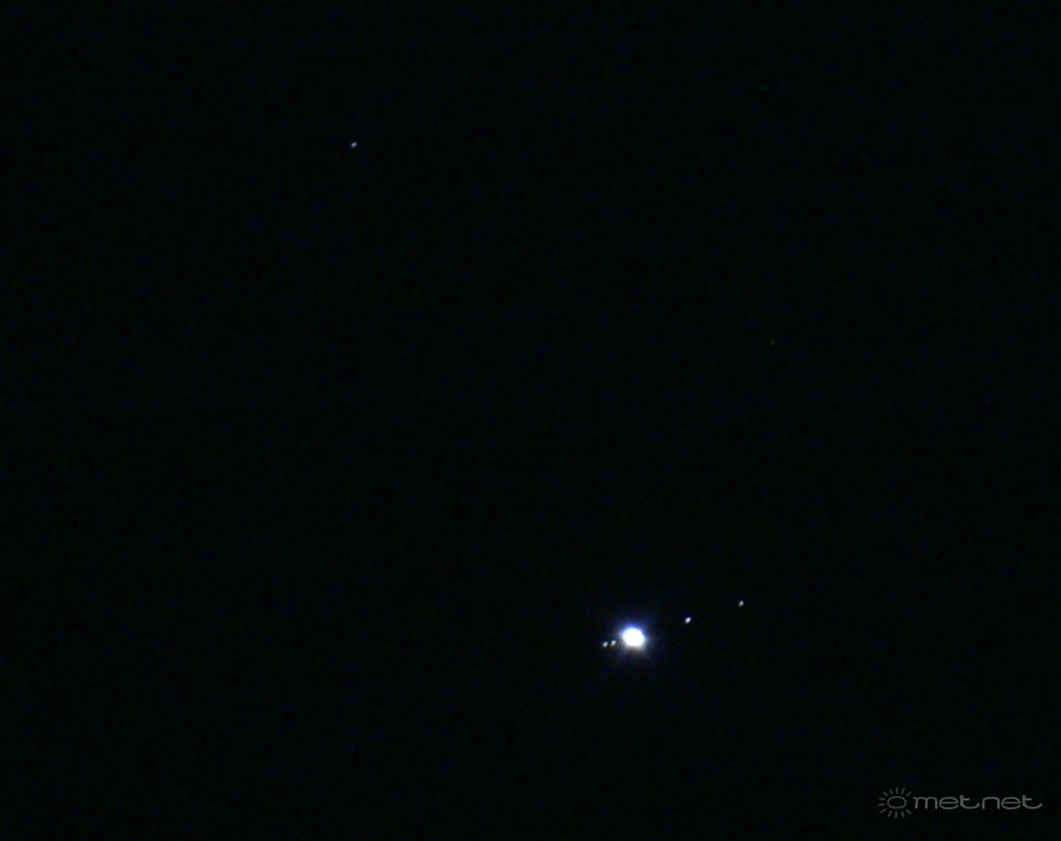 | Leírás: Jupiter és a nagy holdjai, balra fent az Uránusz | |