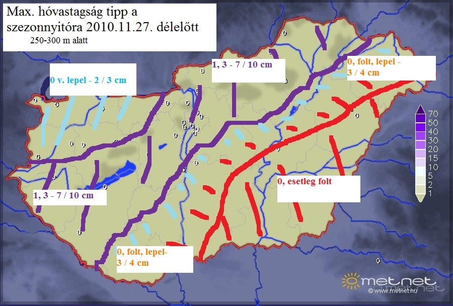 | Leírás: 2010-11-es téli szezonnyitó mediterrán ciklonra vonatkozó hóvastagság tipp:) | |