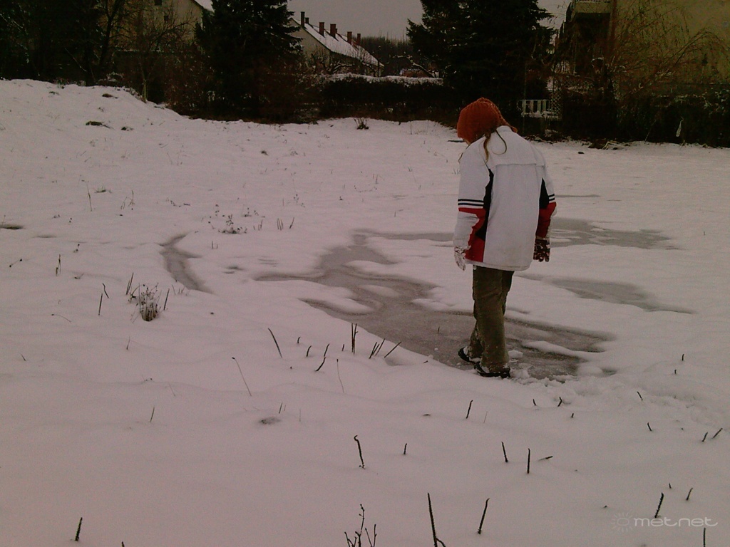 Leírás: Az újabb hóesés kezdete,pocsolyákon való csuszka és hófúvás nyomok