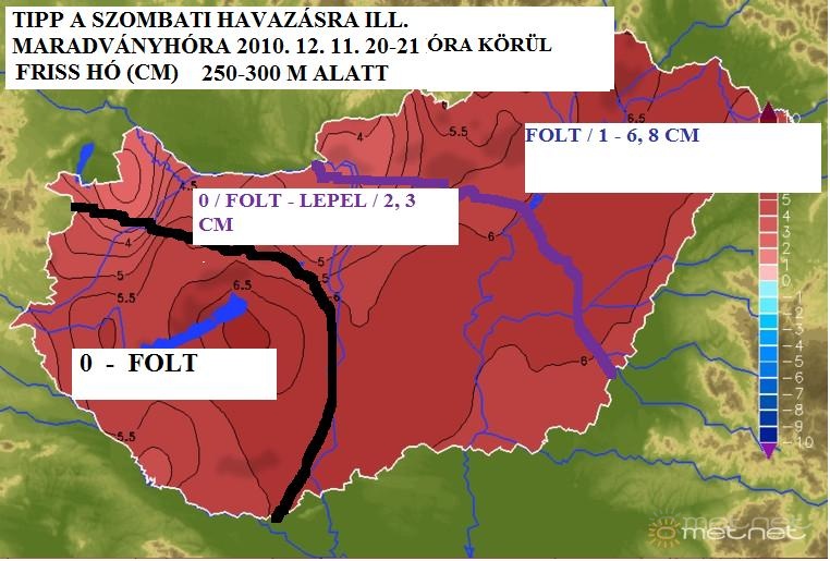 Leírás: Hozzávetõleges hótipp az északnyugatról érkezõ peremciklonra -ill. melegfrontjára- (a tippbe az olvadást/elolvadást is próbáltam belevenni)