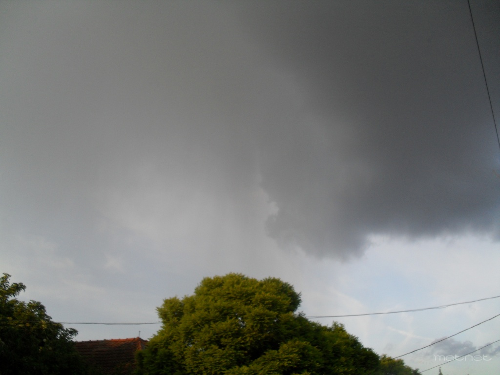 Leírás: Intenzív záporos zivatar furcsa felhõképzõdménnyel.