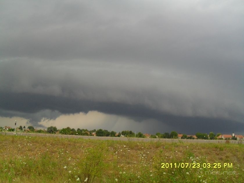Leírás: Szupercellás zivatar érkezése. Ez év idei elsõ szupercellája intenzív kifutószelet és felhõszakadást okozott, emellett páratlan lecsapók is voltak.