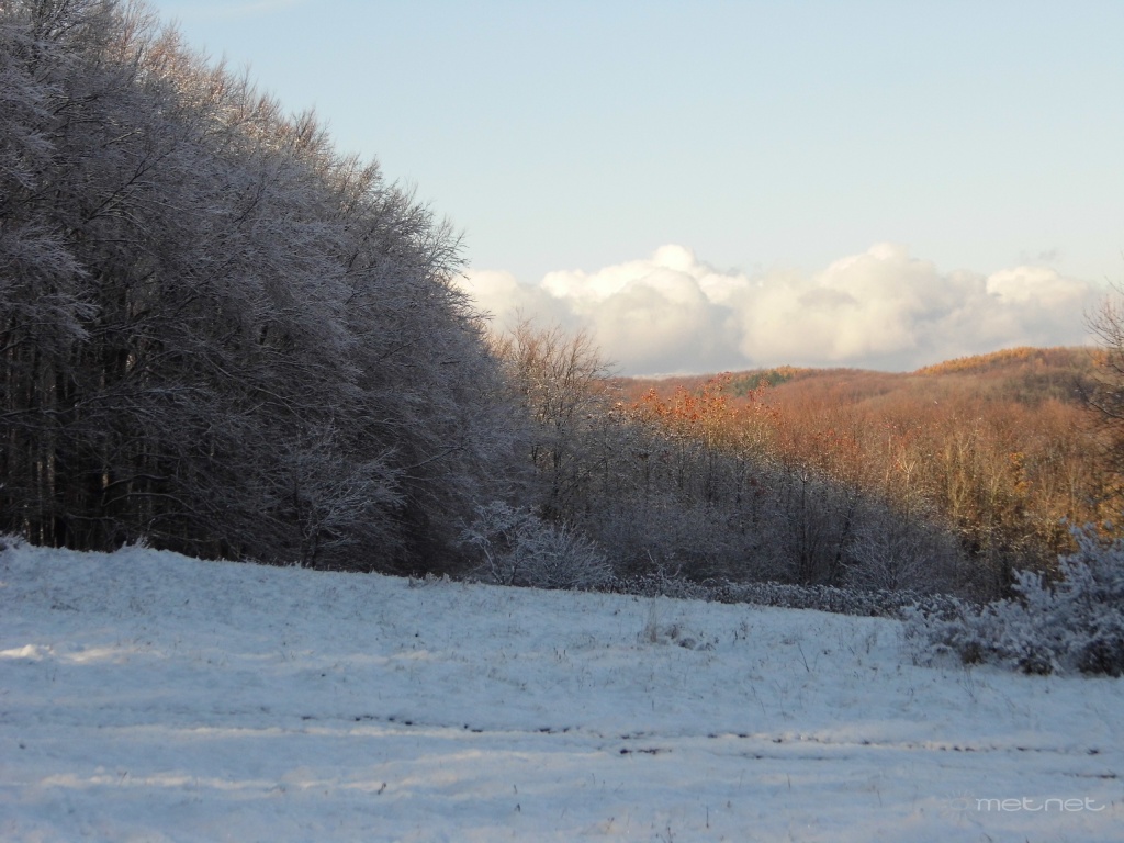 Leírás: A 2015 november 22-ei havazás másnapján a Bükkben, Fehérkõlápa (530-620m) térségében.
