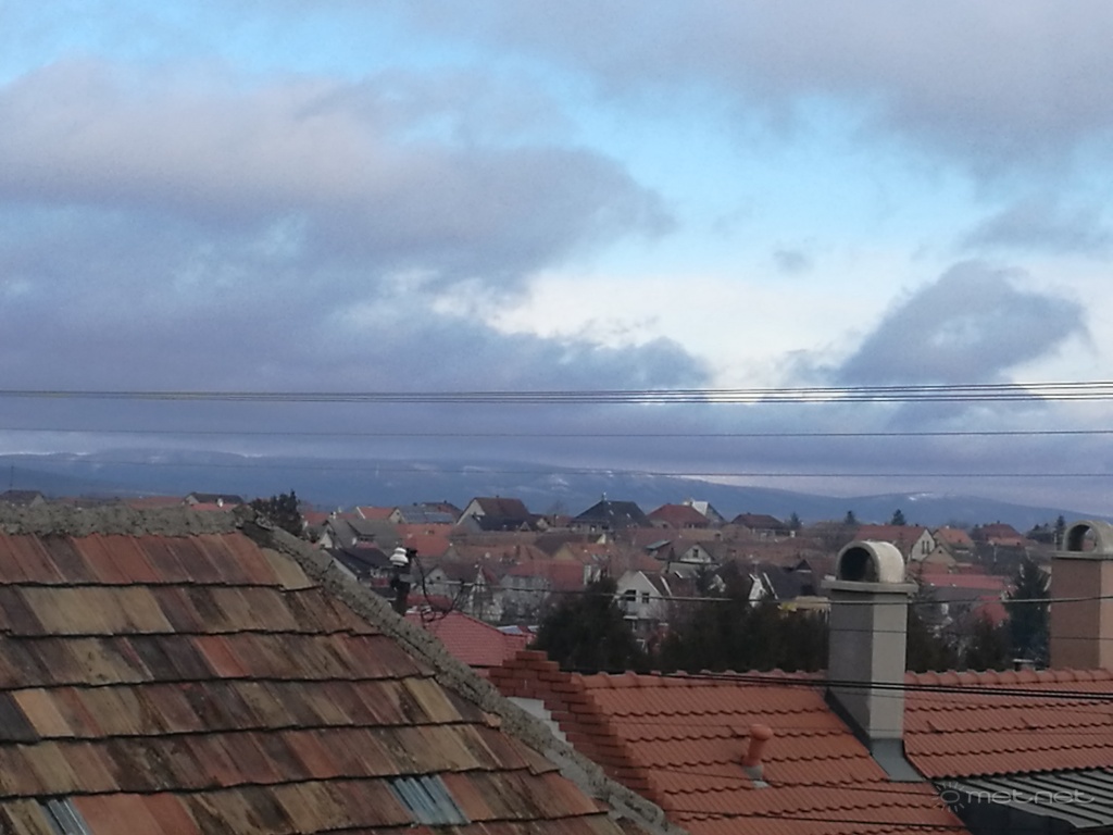 | Leírás: A havas Bakony Veszprémből nézve. | |