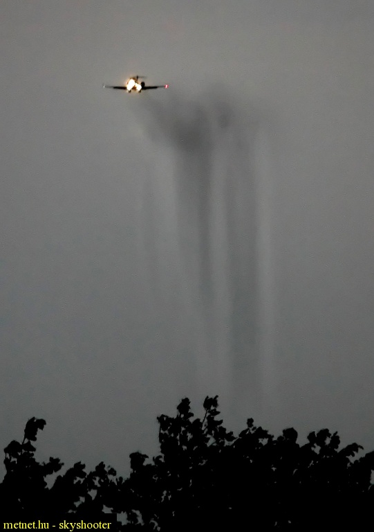 Leírás: Egy zivatarban leszálló Fokker 70-es mögött kialakuló burst szerû jelenség.