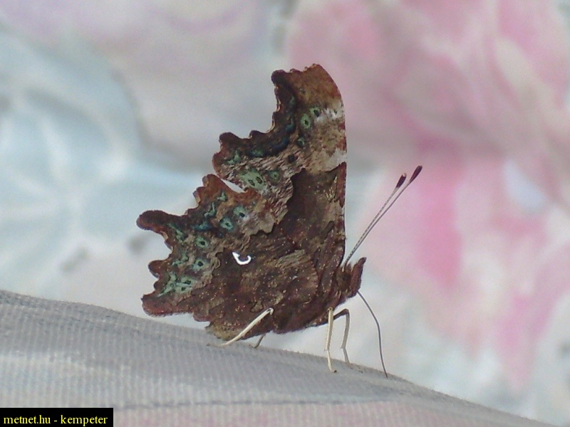 | Leírás: C-betûs lepke. A hintaágy szövetjének nedveit szívogatja éppen. :) | |