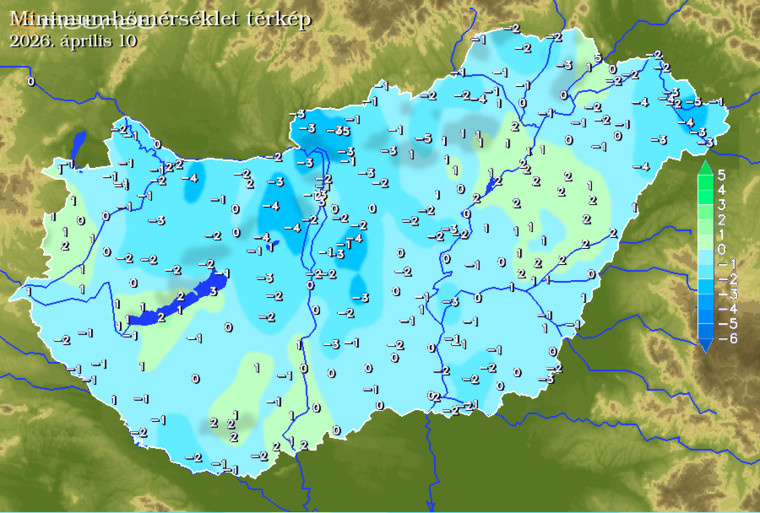 A leghidegebb helyeken -5 fok közelébe csökkent a hőmérséklet, a jellemző fagyos értékek -2 és 0 fok között szóródtak.
